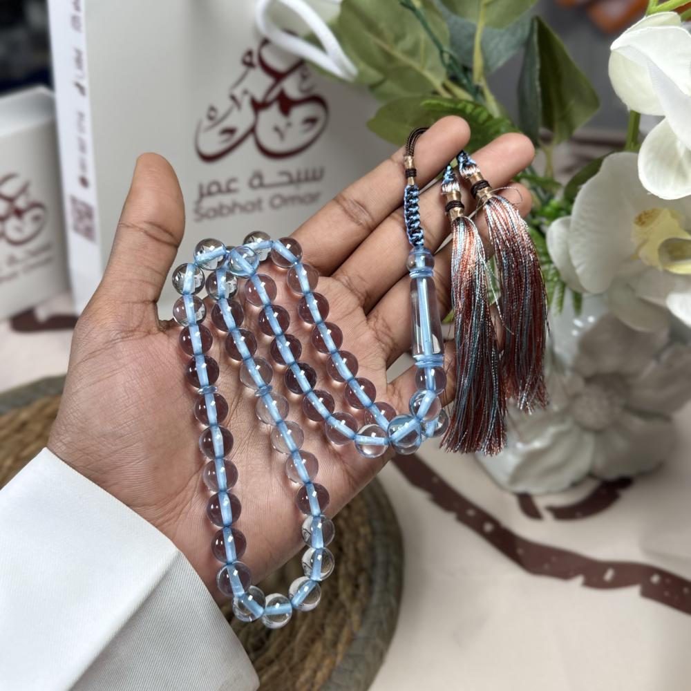 - خرز شفاف: يتميز بلون بحري شفاف، مما يضفي لمسة من الأناقة.
